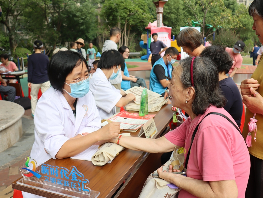 活动现场热闹非凡、人气满满。“银发集市”汇聚了十余个便民服务摊位,为老年人提供一站式生活与健康服务。来自上海市第六人民医院金山分院外科支部、社会资源心启航的志愿者为老人测量血压、检测血糖,并针对异常指标给予健康建议;济德中医门诊部的医师则通过把脉问诊,科普慢性病防治知识。此外,免费理发、磨刀、维修血压计、口腔义诊、手机贴膜等服务也广受欢迎,居民们纷纷点赞“服务送到家门口,太方便了!”